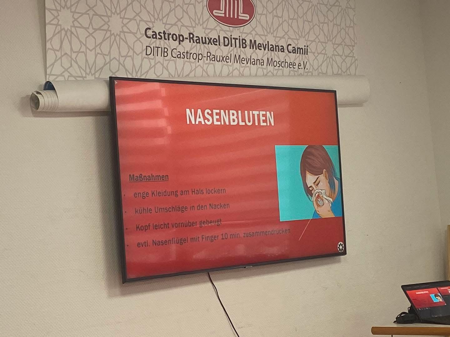 Bugün camimizde bayanlara yönelik Erste Hilfe (İlk Yardım) Kursunu başarıyla gerçekleştirdik.